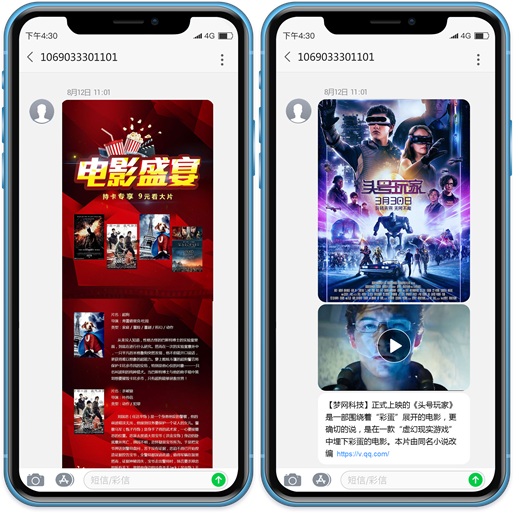 作为一种立体而丰富的信息承载形式,富信传播迅速、观看便捷、内容多元、不耗流量,能够快速满足观众的娱乐需求和探索体验。“内容即营销”的理念也在富信上体现得淋漓尽致。顺利获得富信在会员用户手机终端主动展示发布会、宣传片、剧情预告、创意神剪辑等素材,更是最直观吸引观众注意力、激发观众走进影院的催化剂。除此之外,还包括影视作品海报展示、电影推荐简评、电影视频相关链接等,也能顺利获得富信一步发送到位,于影视宣发企业而言,富信支持动态交互和快速跳转的能力,更能有效促进观众互动及转化。