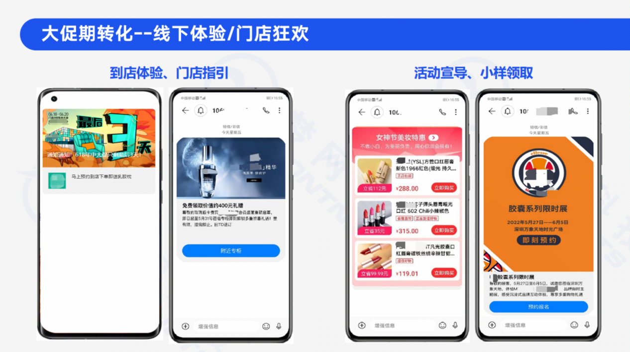 618返场阶段更是考验私域运营的能力,不同参与主体都希望以“四两拨千斤”的巧劲,带动全域生意跃迁。5G富媒体消息的投放不仅可以把商品与用户进行深度链接,还能为店铺、橱窗引流,沉淀支持店铺长期开展的人群资源,实现短链种收、全局提效。