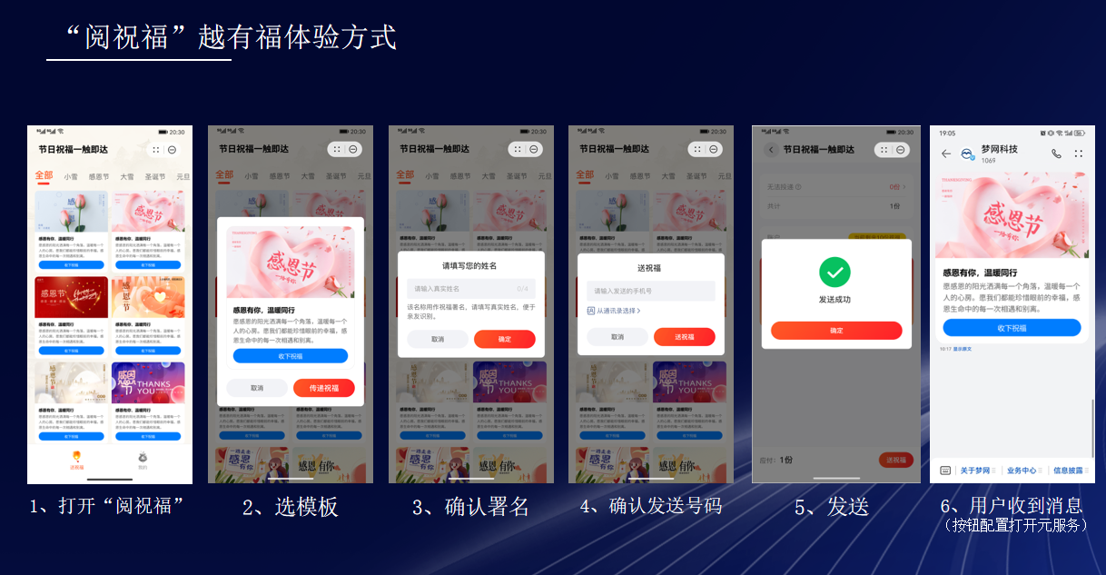 在本次大会上,Bitpay科技还发布了结合节日祝福应用场景的“阅祝福”元服务,其基于手机通讯录,是为鸿蒙用户打造的富媒体祝福信息发送工具,拥有超过100种的精美模板,极大地丰富了社交互动体验。